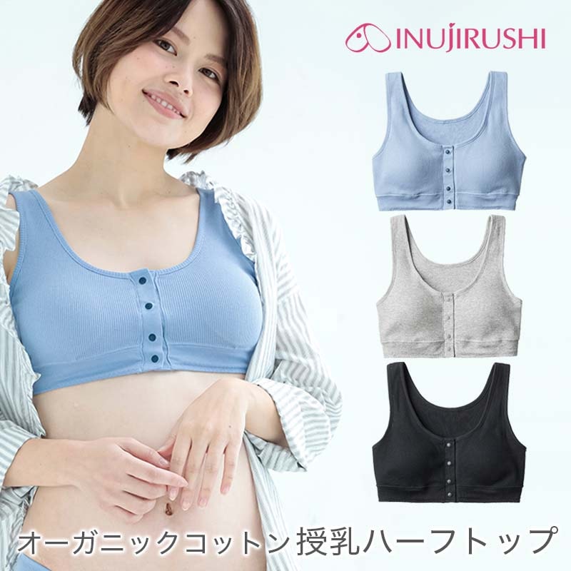マタニティブラ 肌にやさしいハーフトップ(産前・産後)授乳ブラジャー 犬印 BR1686、BR1697メール便使用