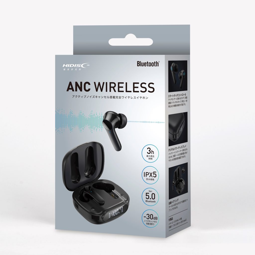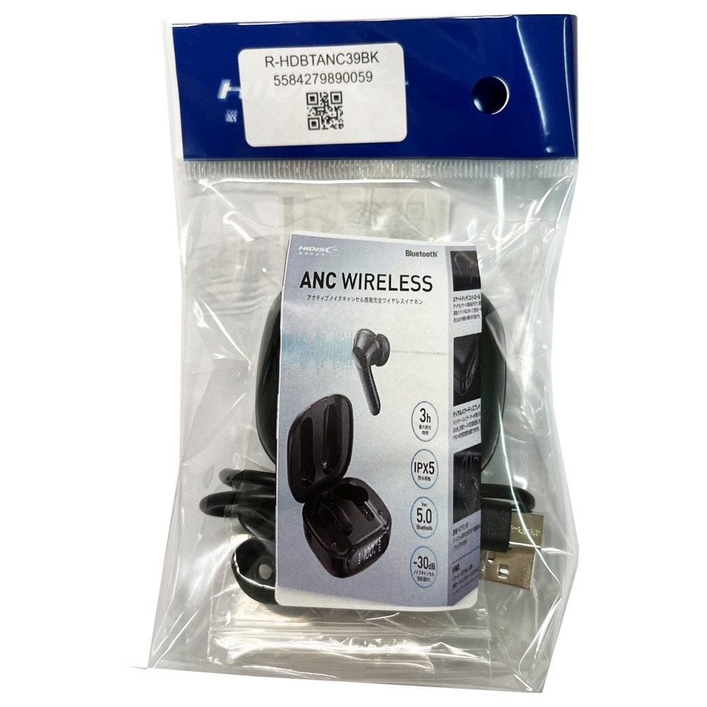 HIDISC アクティブノイズキャンセル搭載完全ワイヤレスイヤホン(ANC WIRELESS)HDBTANC39BK