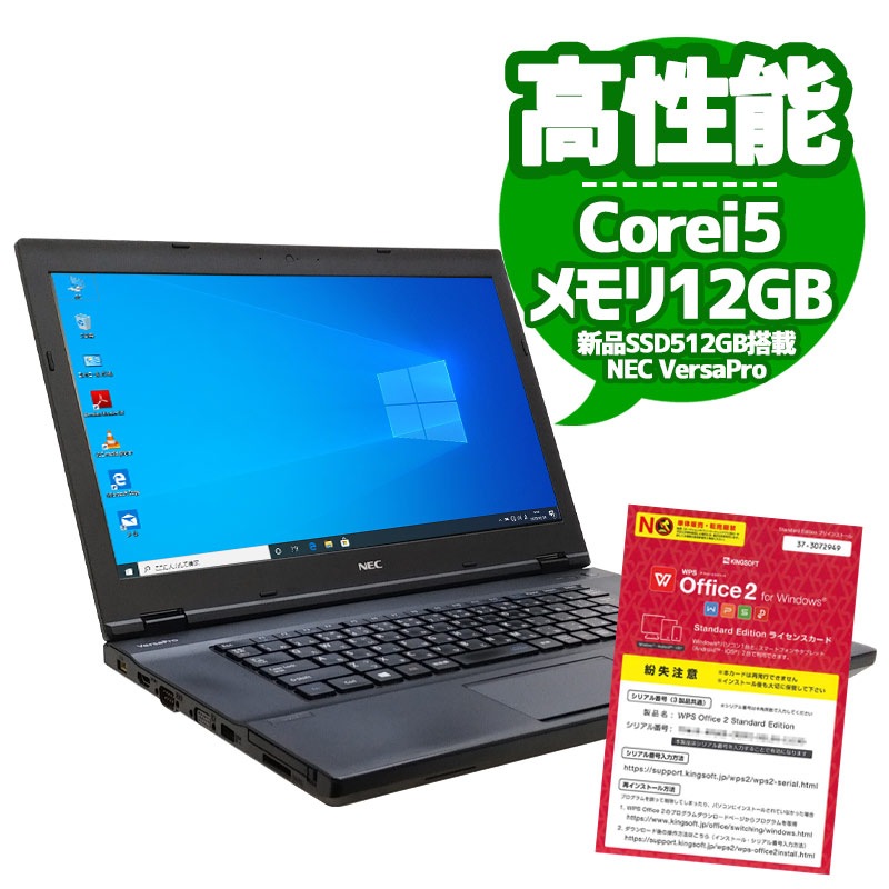 中古ノートパソコン NEC VersaPro VK27M/X-N Windows10Pro Corei5-2.7Ghz メモリ8G...