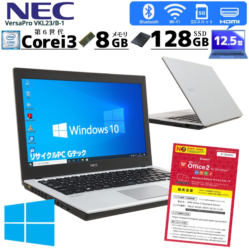 中古ノートパソコン NEC VersaPro VKL23/B-1 Windows10Pro Corei3 6100U メモリ8GB...
