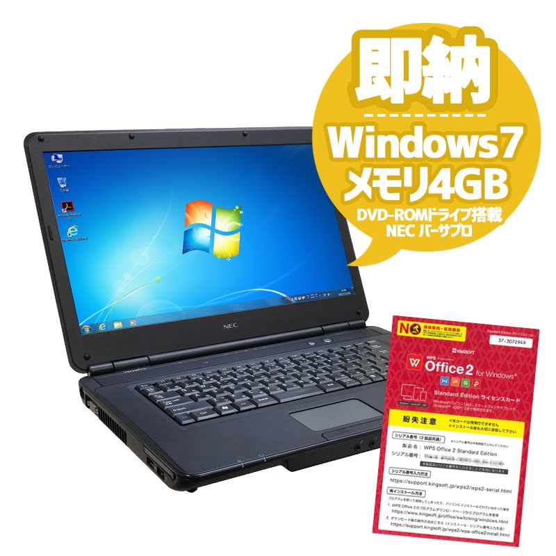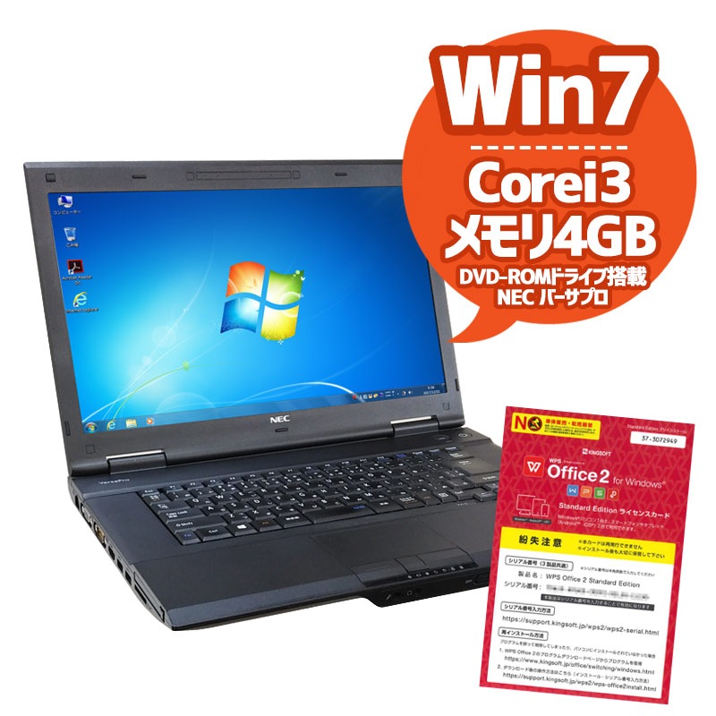 中古ノートパソコン NEC VersaPro VK24L/X-E Windows7 Corei3 2370M メモリ4GB HD...