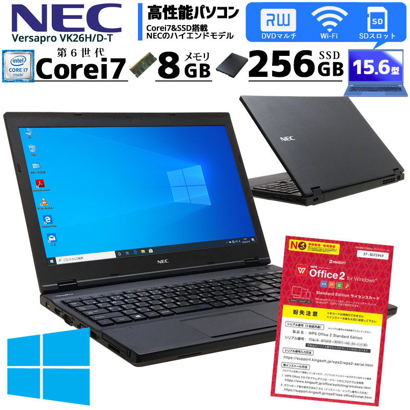 中古ノートパソコン NEC VersaPro VK26H/D-T Windows10Pro Corei7 6600U メモリ8G...