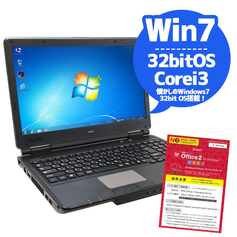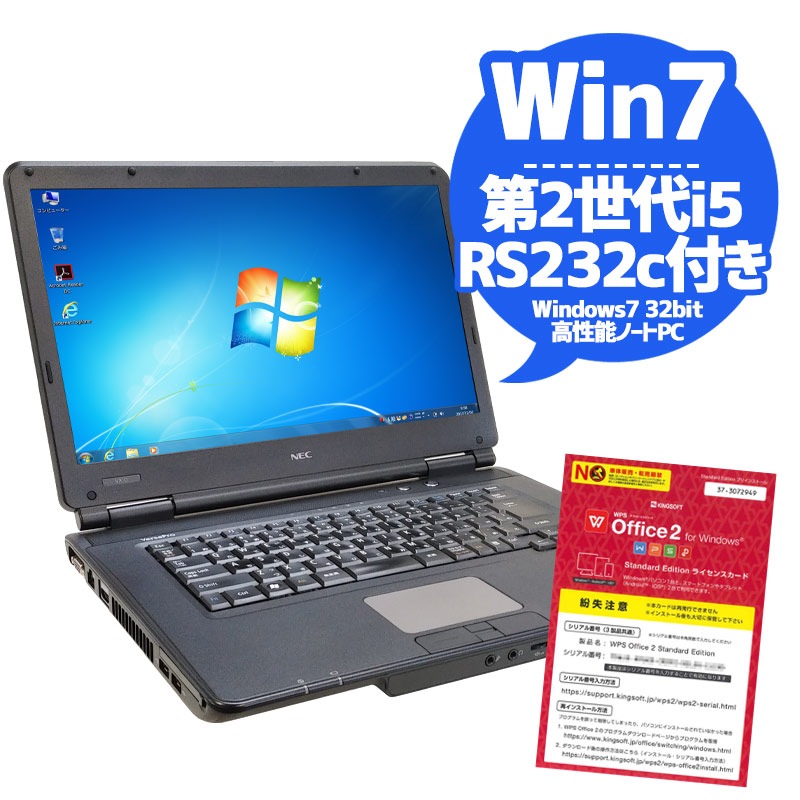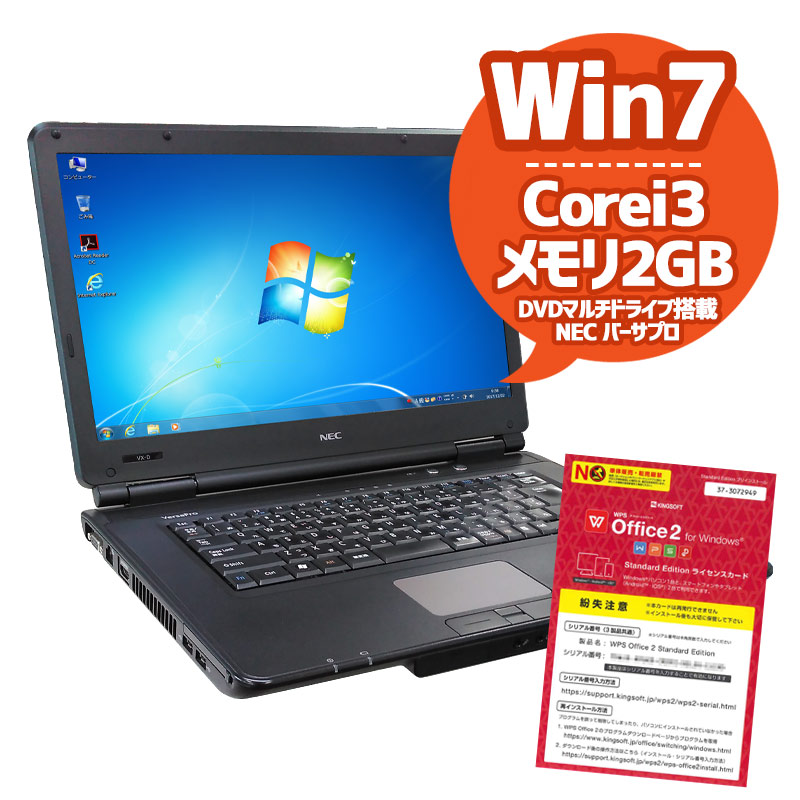 中古ノートパソコン NEC VersaPro VK24L/X-E Windows7 Corei3 2370M メモリ2GB HDD...