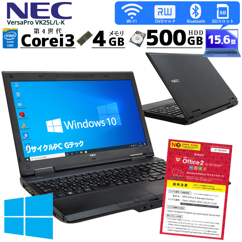中古ノートパソコン NEC VersaPro VK25L/L-K Windows10 Corei3 4100M メモリ4GB H...