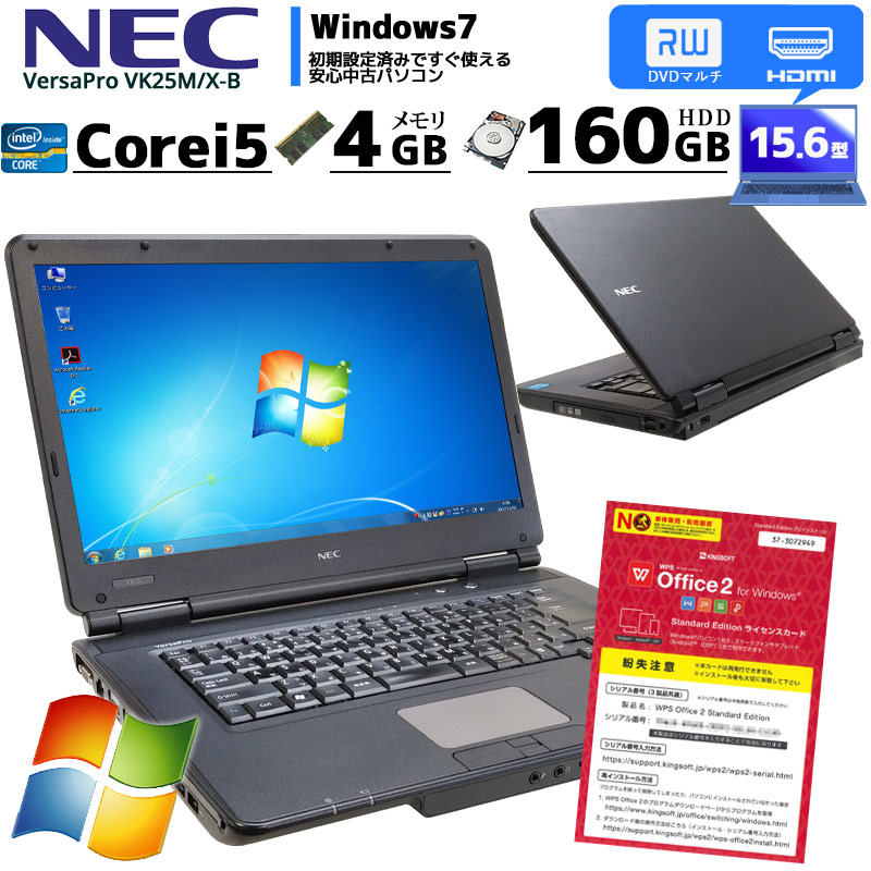 中古ノートパソコン NEC VersaPro VK25M/X-C Windows7 Corei5 2520M メモリ4GB HDD...