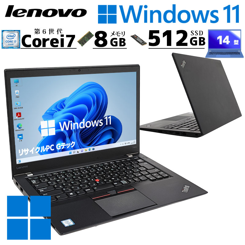 薄型 高性能 中古パソコン Lenovo ThinkPad T460s Windows11 Pro Core i7 6600U メ...