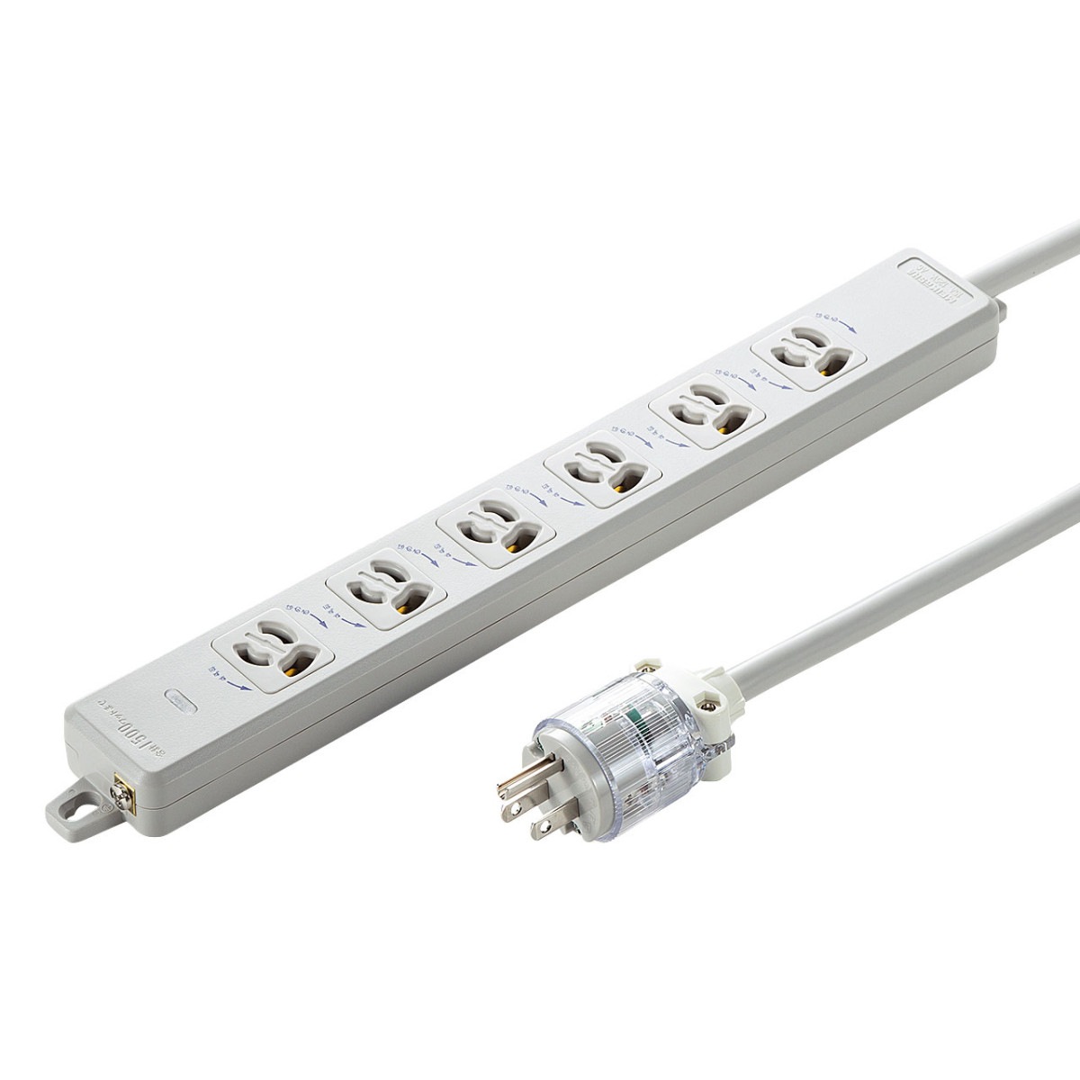 [TAP-HPM6-3W] 医用接地プラグ付き電源タップ(3P・6個口・グレー・3m)