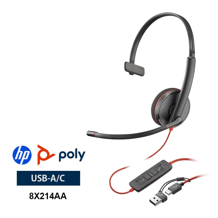 [8X214AA] Poly Blackwire 3210 USB-C +USB-A 変換アダプタ付 片耳 有線モデル ノイズキャ...