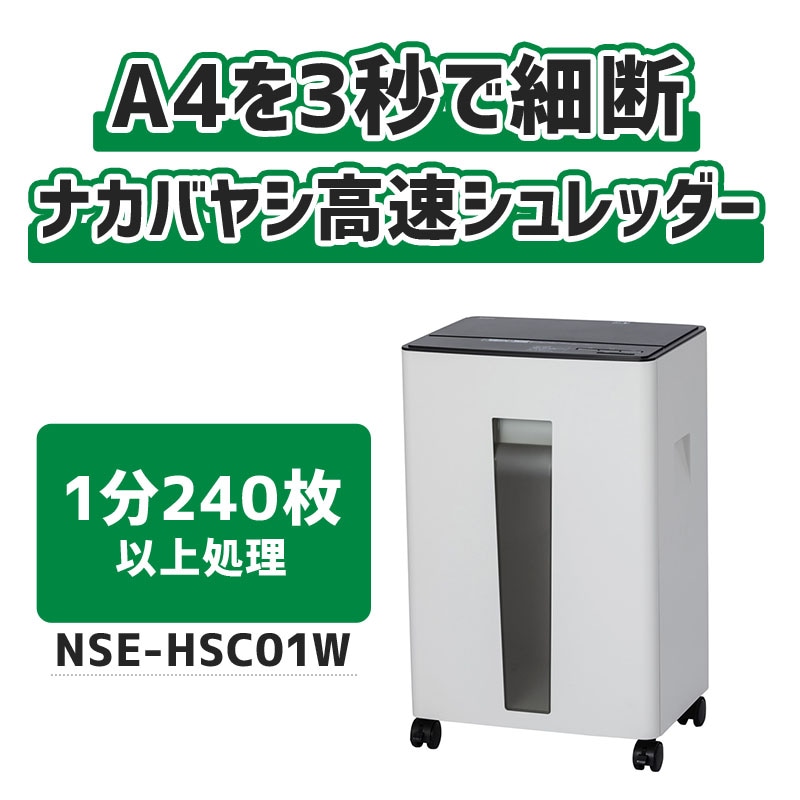 ナカバヤシ 時短ハイスピードシュレッダ/ホワイト NSE-HSC01W 高速業務用シュレッダー【新品】【送料無料】【メーカー直送】
