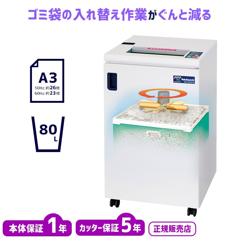 ナカバヤシ A3業務用シュレッダー SXI-406CR 【送料無料】【新品】【メーカー直送】【保守対応可】