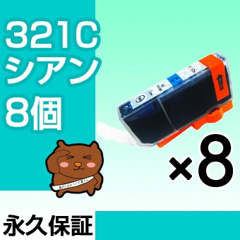 BCI-321C シアン8個【BCI-321C増量】【互換インクカートリッジ】キヤノン用【キャノン インク】【永久保証】【送料無料...