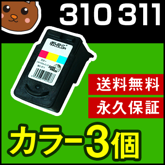 【送料無料】BC-311 キャノン カラー3個セット【再生/リサイクルインクカートリッジ】【永久保証】