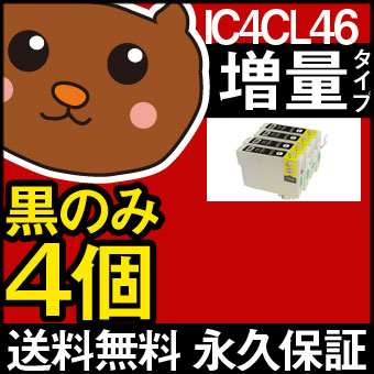 【永久保証】 ICBK46 ブラック/黒4個セット 【互換インクカートリッジ】 EP用 【送料無料】 EP社