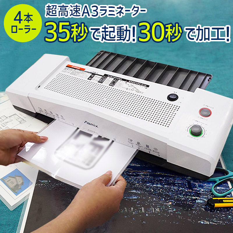 約1分で加工まで完了! A3 4本ローラー ラミネーター Asmix/アスカ L410A3【新品】 ★