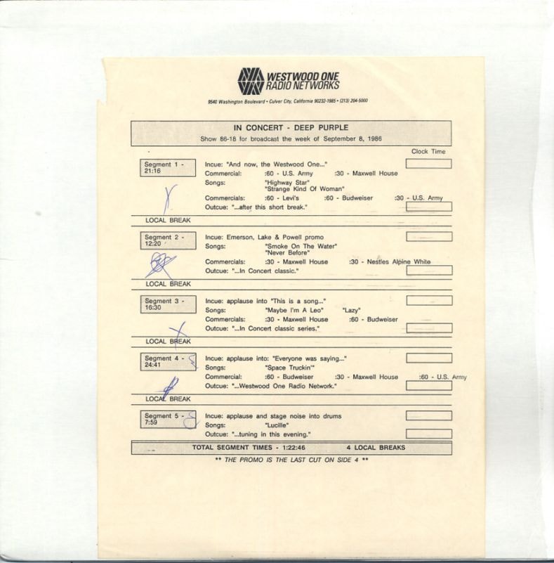 DEEP PURPLE / IN CONCERT: SHOW 86-18 FOR BROADCAST THE WEEK OF SE...