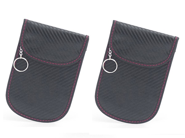 リレーアタック対策 電波遮断ポーチ Lサイズ 2個セット キーケース 電波 遮断 防止 ケース スマートキー カーボン調 ブラック