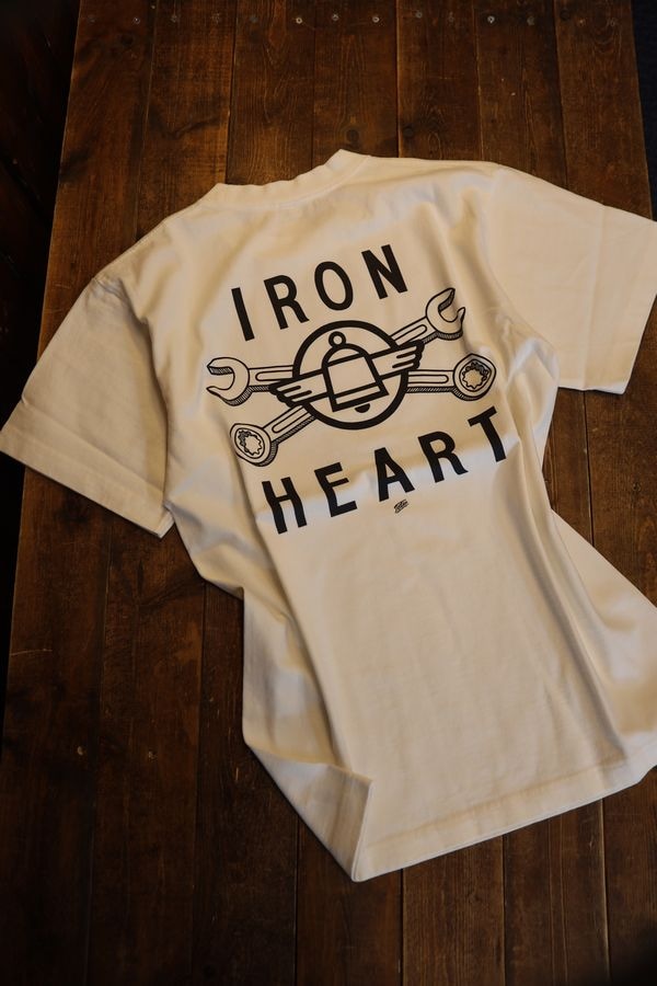 IRON HEART アイアンハート IHT-2403 7.5ozヘビーボディプリントTシャツ(復刻ピストン柄) ホワイト