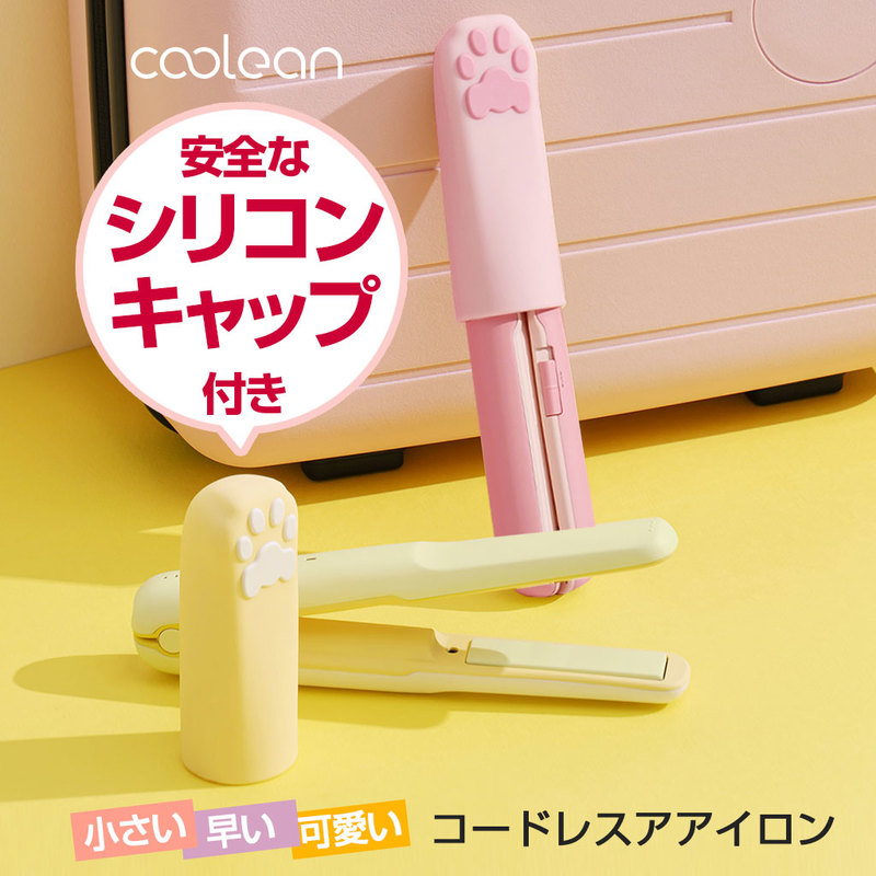 【充電型ヘアアイロン】 キュートなデザイン Coolean コードレス ミニヘアアイロン USB Type-C