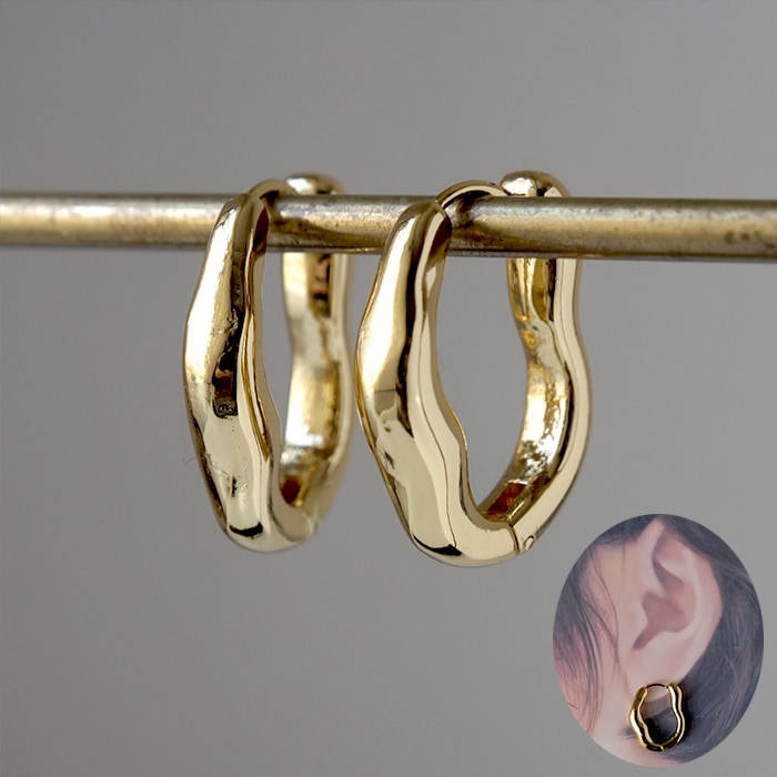 金属アレルギー対応 【255. 変形フープピアス キャッチレス 1ペア】 ステンレス ピアス レディース 変形デザイン ゴールド ...