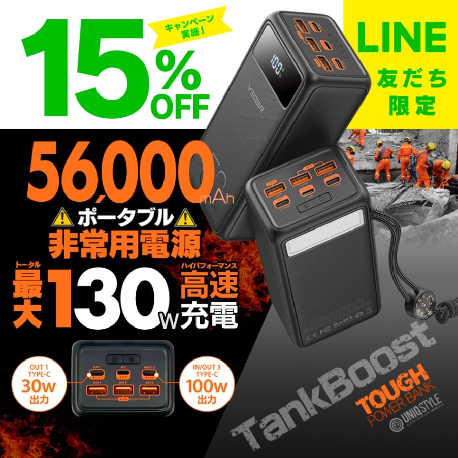 【ユニークダイレクト LINE友だち限定】非常用電源 VEGER TankBoost 56,000mAh 130W高速充電 パワー...