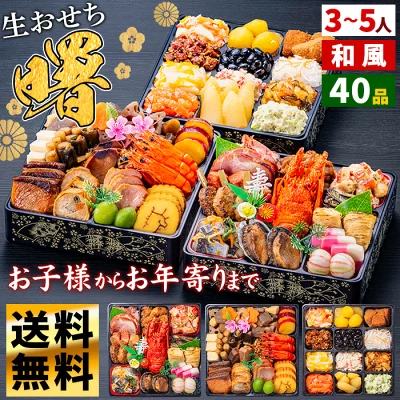 【送料無料】玉清 おせち料理 2026年 和風 3~5人前 40品目 生詰め 三段重 『曙』