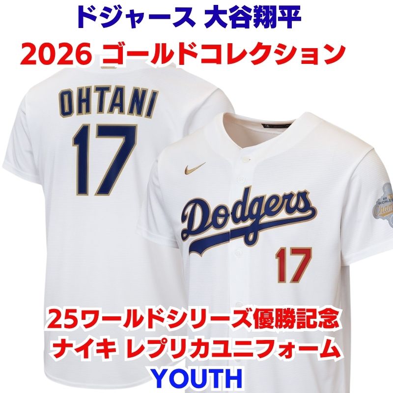2026 ゴールドコレクション ドジャース ユニフォーム YOUTH 子供用 ワールドシリーズ優勝記念 ナイキ レプリカユニフォ...