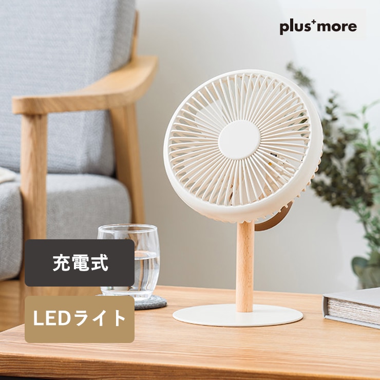 [PBAF003-OW] plus more(プラスモア) 充電式ミニリビングファン LEDライト付 オフホワイト★