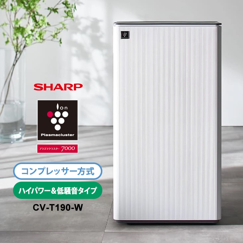 [CV-T190-W] コンプレッサー方式 衣類乾燥除湿機 パワフル低騒音タイプ プラズマクラスター7000 ホワイト系★