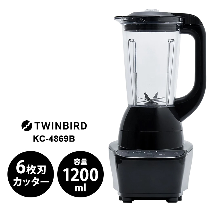 [KC-4869B] 【特価セール】 パワフルミキサー ブラック 1200ml レシピブック付き