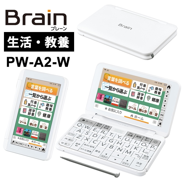 [PW-A2-W] カラー電子辞書 Brain(ブレーン) 生活・教養モデル 150コンテンツ ホワイト系
