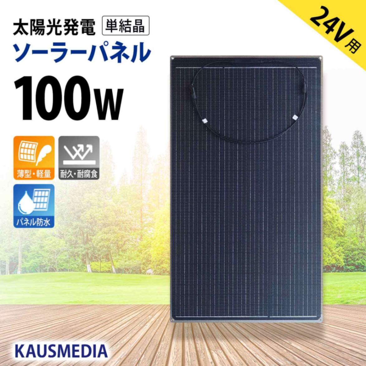 24V バッテリー 対応 100W ソーラーパネル 薄型 軽量 セミフレキシブル 単結晶 バッテリー充電 ETFE 防水 高効率セ...