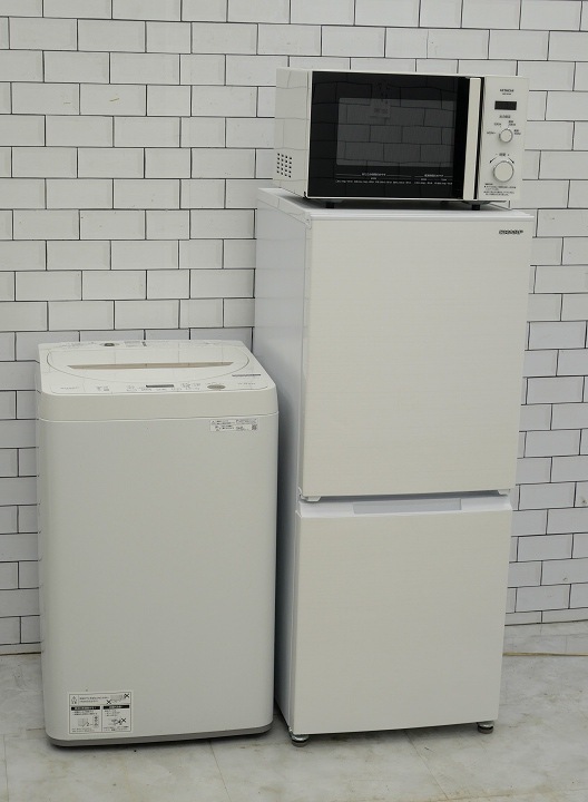 152L、4.5kg/21年、21年、21年製/シャープ、シャープ、日立製/(冷蔵庫、洗濯機、電子レンジ)中古家電3点セット
