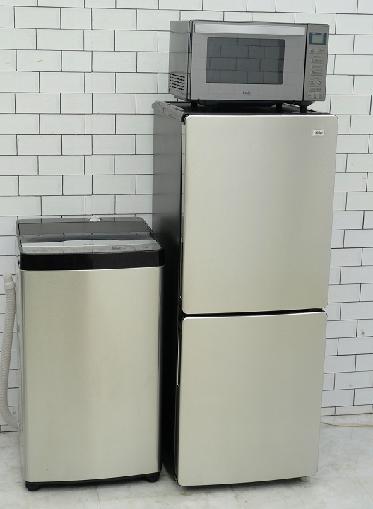 148L、5.5kg/24年、24年、23年製/Haier、Haier、Haier製/(冷蔵庫、洗濯機、電子レンジ)中古家電3点セ...