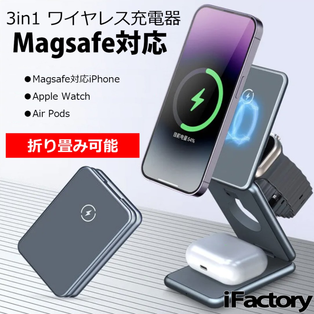 3in1 Magsafe ワイヤレス充電器 折り畳み可能 iPhone AppleWatch AirPods Android
