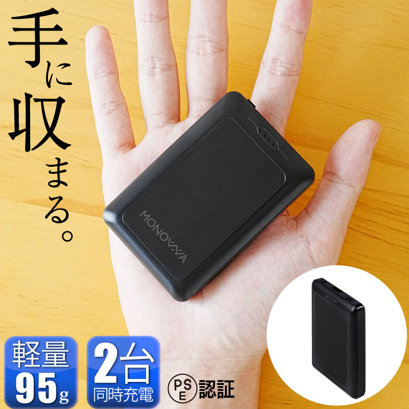 モバイルバッテリー ミニ型 大容量 10000mAh / 5000mAh コンパクト 急速充電 2台同時充電 Type-C & U...