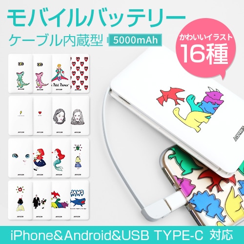 【訳あり アウトレット】 モバイルバッテリー 5000mAh ケーブル内蔵型 Type-C iPhone Android USB ...