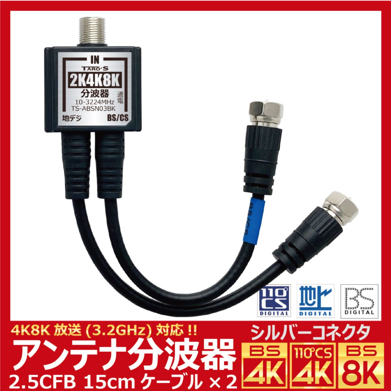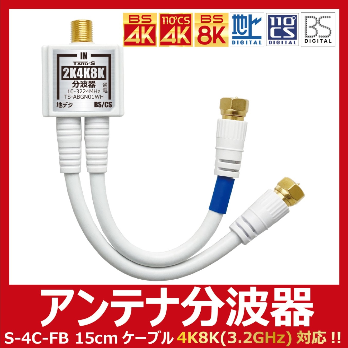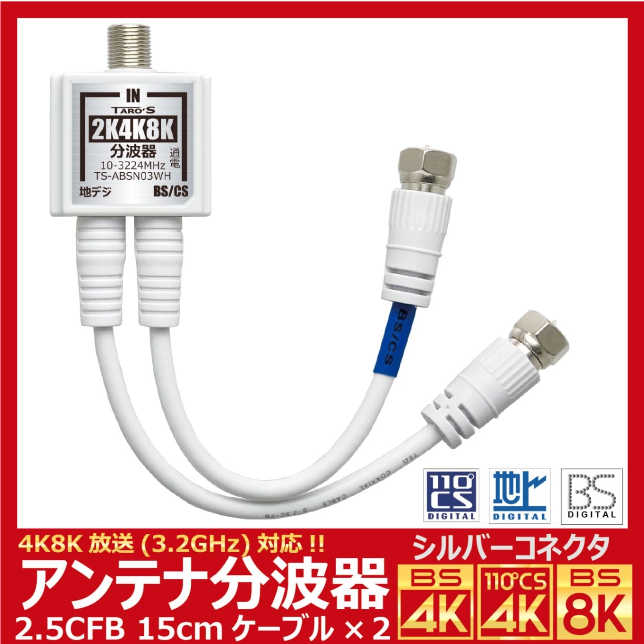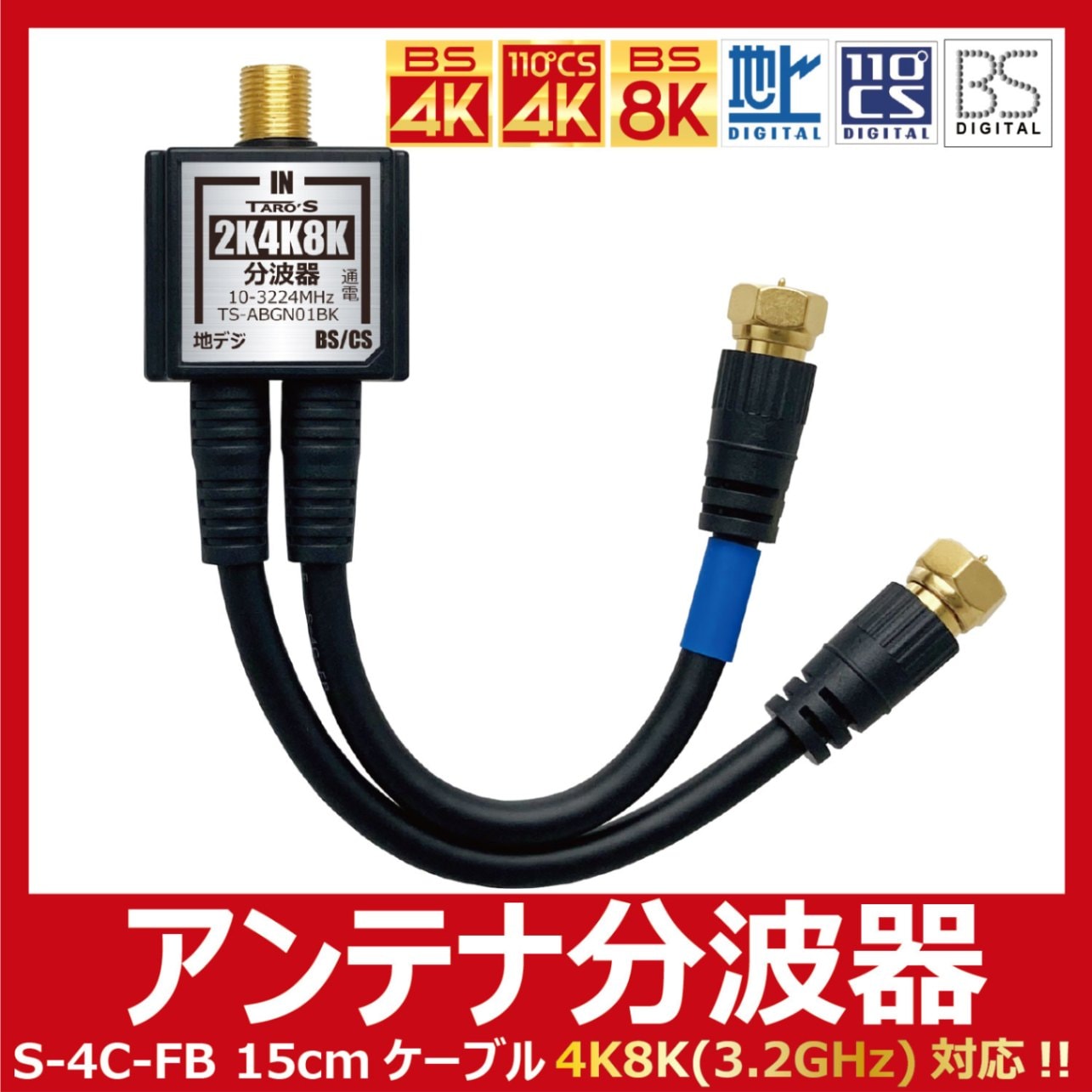 TARO\'S アンテナ分波器 入力/出力一体型ケーブル付き 4K8K放送(3224MHz)/BS/CS/地デジ/CATV 対応 ...