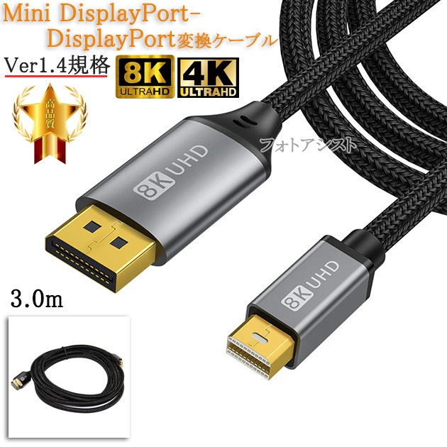 【互換品】NEC対応 Mini DisplayPort-DisplayPort変換ケーブル 3.0m 1.4規格 Part....