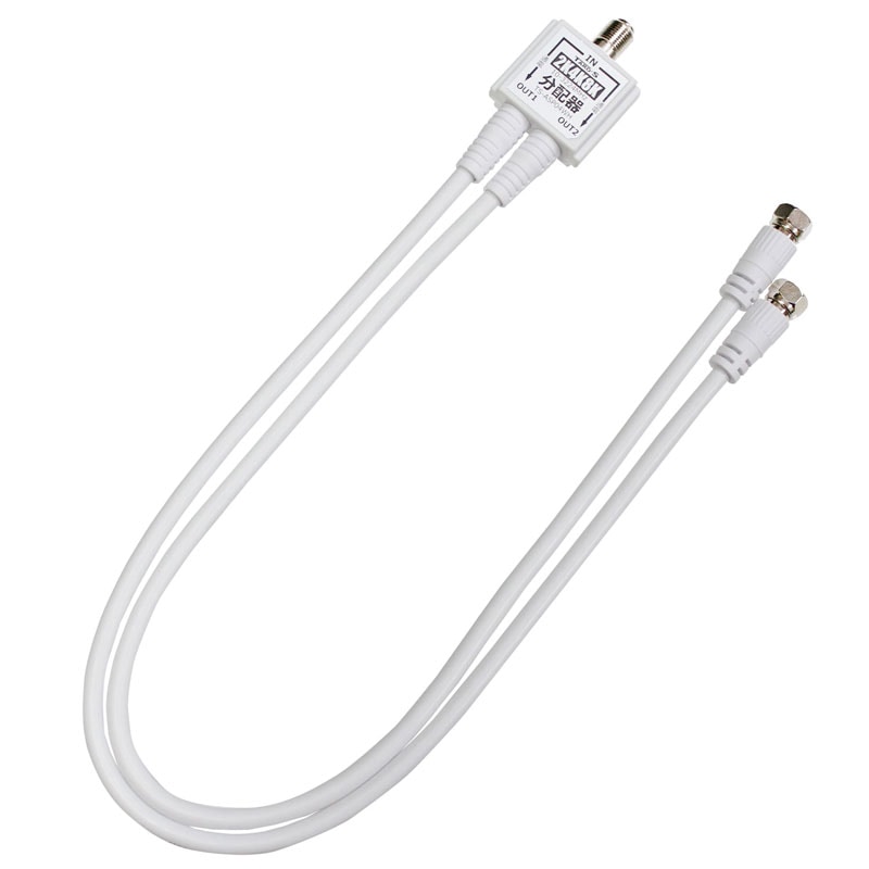 【送料無料 ネコポス便】テレビアンテナ分配器 4K8K・地デジ・BS・CS・CATV放送対応 2分配 ケーブル一体型 入力側ケーブ...