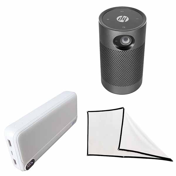 HP CC180W モバイルバッテリー対応ポータブルHDプロジェクター 本体・バッテリー・布スクリーンの3点セット|HP CC18...