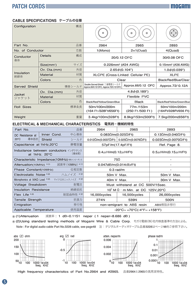 MOGAMI (モガミ) 2965 75Ω同軸平行ケーブル 75Ω #24AWG 4.8φ×2 77m巻