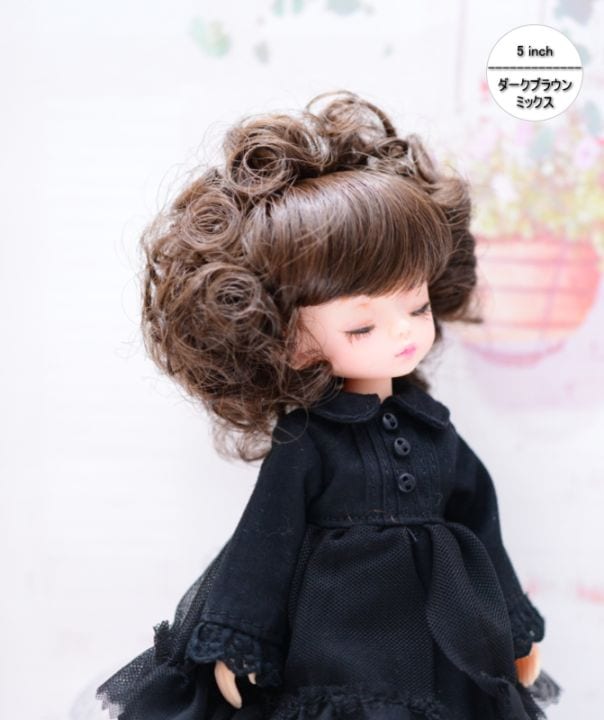 【5インチ】 耐熱 ドール用ウィッグ 前髪ありアフロ / ダークブラウンmix
