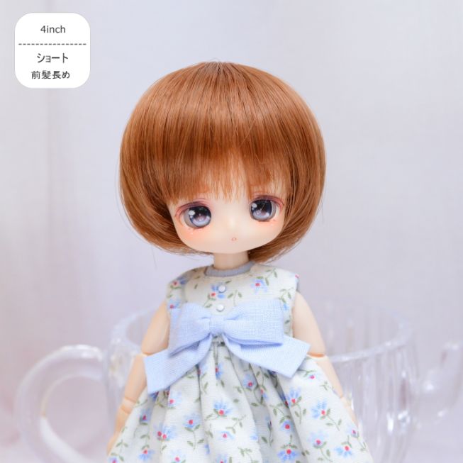 【4インチ】 耐熱 ドール用ウィッグ 前髪長めショート オレンジブラウン