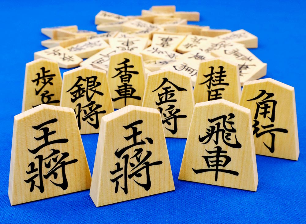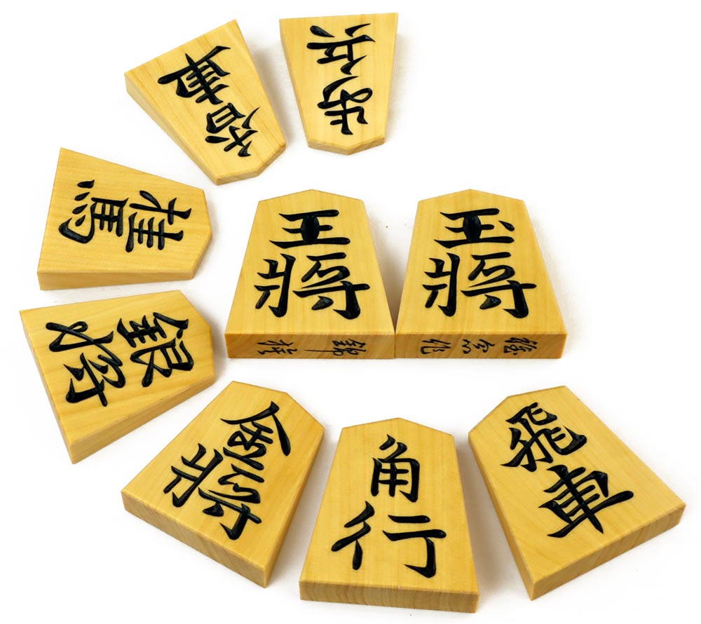 将棋駒 稚念作 御蔵島産本黄楊材 彫駒 錦旗書 面取り加工 ※桐平箱付