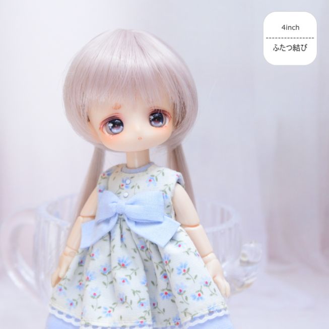 【4インチ】 耐熱 ドール用ウィッグ ふたつむすび ペールライラックシルバー