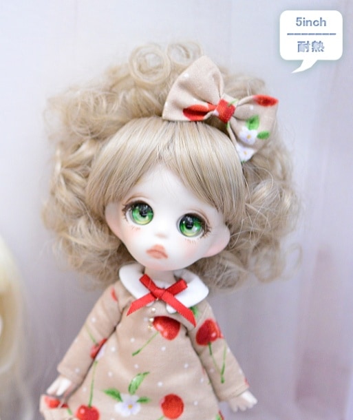 【5インチ】 耐熱 ドール用ウィッグ 前髪ありアフロ /ベージュミックス