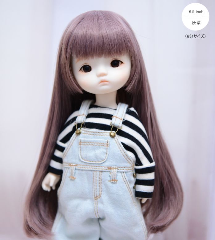 【6.5インチ】 ドール用ウィッグ ロング内巻 / 灰紫