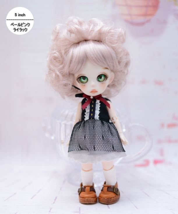 【5インチ】 耐熱 ドール用ウィッグ 前髪ありアフロ / ペールピンクライラック