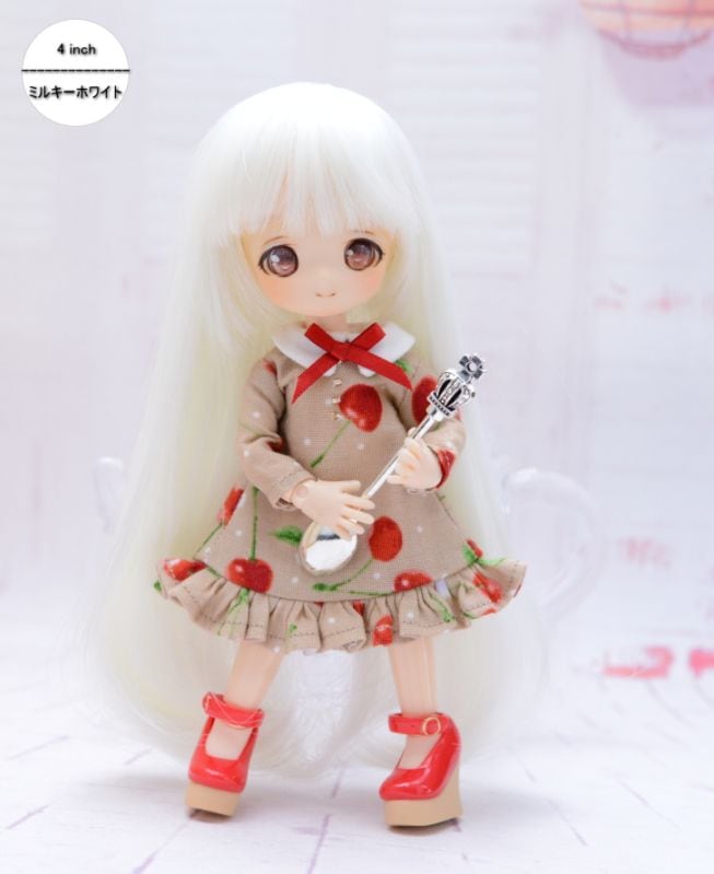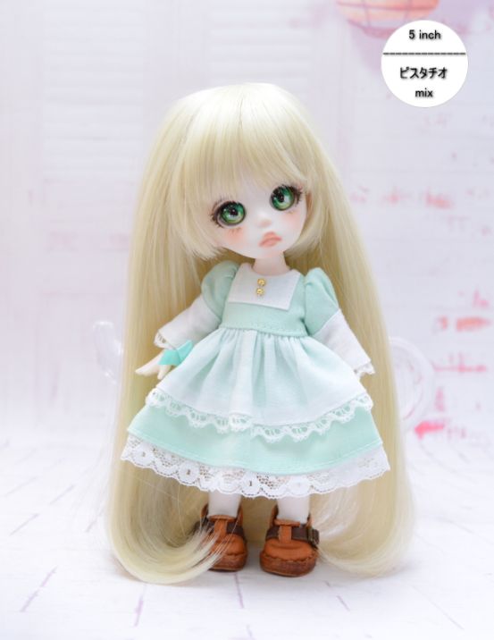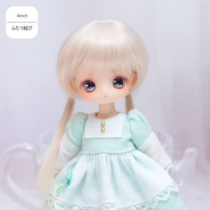 【4インチ】 耐熱 ドール用ウィッグ ふたつむすび シェルピンク