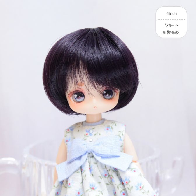 【4インチ】 耐熱 ドール用ウィッグ 前髪長めショート ブラックパープル